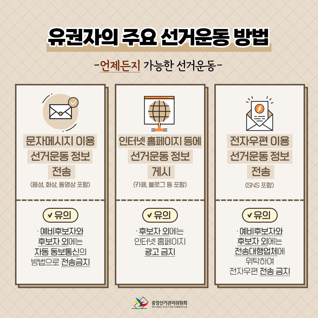 유권자가 할 수 있는 선거운동 방법에는 어떤 것들이 있을까요? 함께 알아보겠습니다!