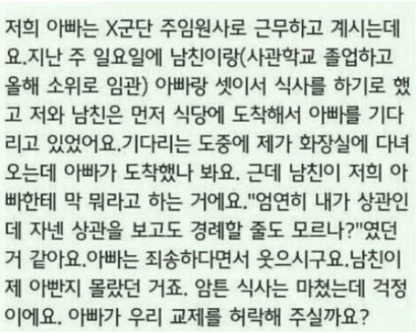 | 여친 아버지가 여친 행복하게 할 자신 있냐길래 ㅎㅎ (0) | 2024.04.16 |