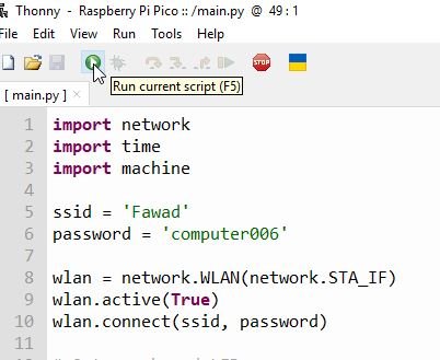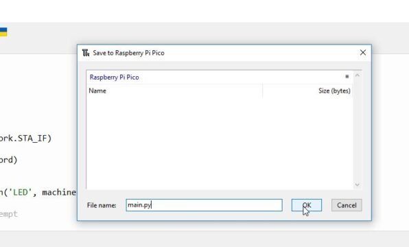 프로그램을 저장하려면 Thonny IDE 또는 원하는 다른 IDE를 열고 아래에 제공된 프로그램을 복사하여 붙여넣습니다. 그런 다음 라즈베리파이 Pico W에 'main.py'라는 이름으로 저장합니다.