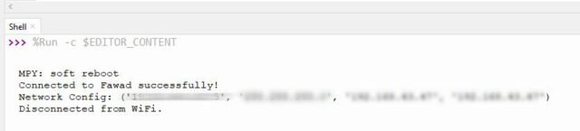 이 스크립트는 또한 elif not wlan.isconnected() 및 connected: 를 사용하여 WiFi 연결이 끊어졌는지 확인합니다. 이 조건은 연결된 변수가 True인 동안 WiFi가 연결되지 않았는지 확인하여 이전에 연결되었음을 나타냅니다. 연결이 끊어지면 "WiFi에서 연결이 끊어졌습니다."를 출력하고 연결된 변수를 연결이 끊어진 상태를 나타내는 False로 설정합니다.