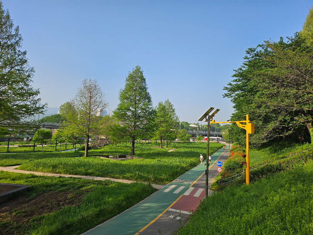 우리가 달리는 양재천 주로가 연두로 변했다. 어린 초록색 느낌의 연두색은 이른 봄 풀과 나뭇잎이 막 나온 새순의 색깔이다. 연두색은 노란색 초록색의 중간색으로, 귀엽고 여린 모양이라서 아동과 관련된 곳에 자주 활용한다.