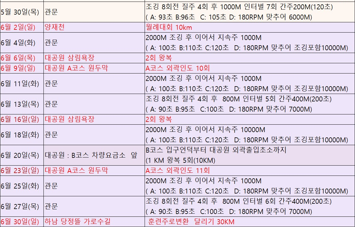 | 2024년 하반기 달리기 훈련 일정 (0) | 2024.07.01 |