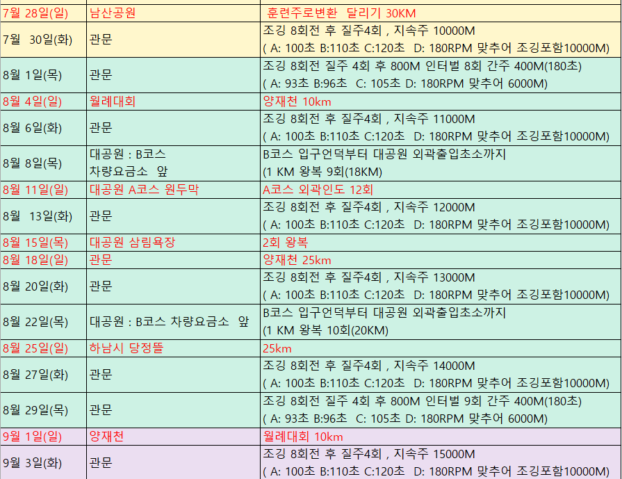 매월 1일 공개하는 달리기 일지는 바로 전 달에 쓴다. 9월 달리기 일지는 8월에 쓰고, 8월 달리기 일지는 7월에 쓴다. 지금 쓰는 8월 달리기 일지는 9월 1일에 공개로 전환한다.