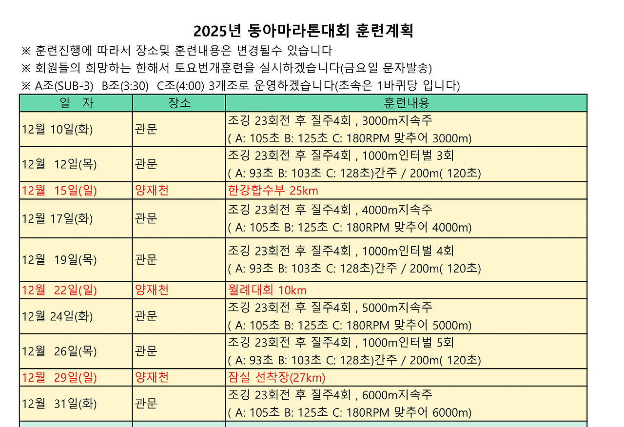 1. 12월 19: 2025 JTBC 서울마라톤 얼리버드 사전신청(추첨제) 본접수는 추후 별도공지