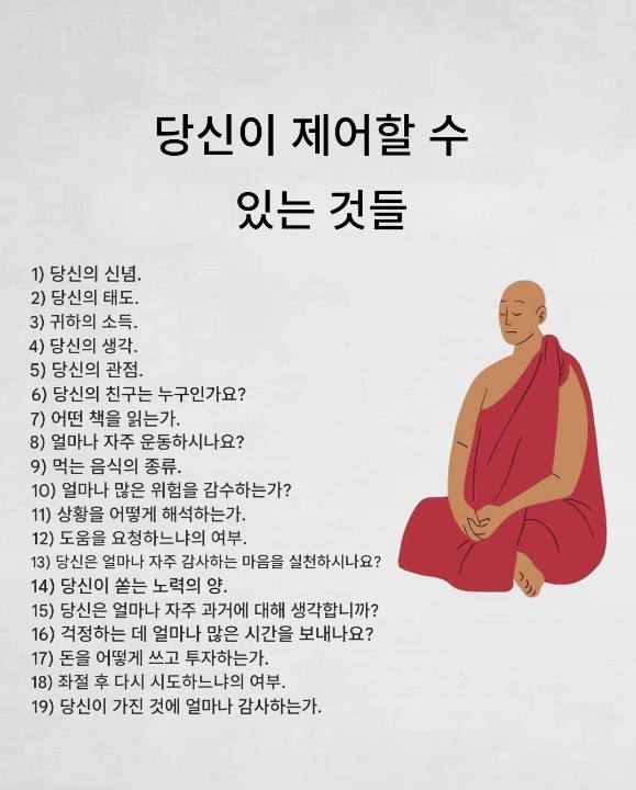 고구려 마라톤 개최가 문제가 되어선지 챌린지 레이스로 갈아탄다. 참 쉽게 바꾼다. 상황에 맞추는 일은 최선을 다 한 후에 하는 건데 이건 아무 때나 기분 따라간다. 그걸 교통정리도 하지 못하는 분들도 문제다. 달리기에서 멀어지기로 했으니 신청은 모두 하지 않는다. 불평하기 전에 모든 책임을 먼저 진다. 우리가 통제하는 것들은 바로 아래와 같은 것들이다.