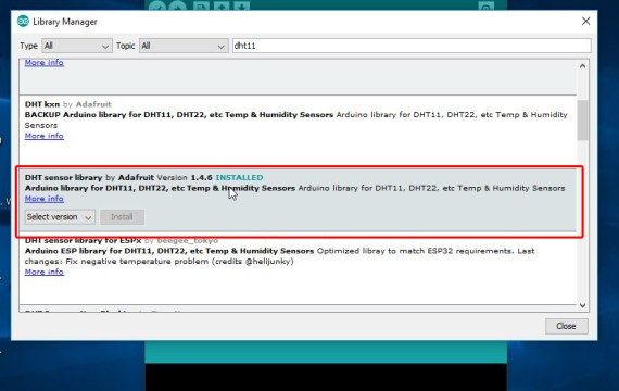 다음 단계를 따르면 Arduino IDE에 Adafruit DHT11 라이브러리가 성공적으로 설치되어 프로젝트에서 사용할 수 있습니다.