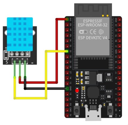DHT11 센서는 ESP32 마이크로컨트롤러와 인터페이스되어 ESP32 내장 BLE를 통해 온도 및 습도와 같은 환경 조건을 모니터링합니다. DHT11의 신호 핀은 ESP32의 GPIO 32에 연결되어 있어 마이크로컨트롤러가 센서로부터 온도 및 습도 데이터를 수신할 수 있습니다. DHT11의 접지 핀은 ESP32의 접지 핀 중 하나에 연결되어 전류와 전체 회로에 대한 공통 기준점을 보장합니다. DHT11의 VCC 핀은 센서에 전원을 공급하는 ESP32의 3.3V 출력에 연결됩니다.