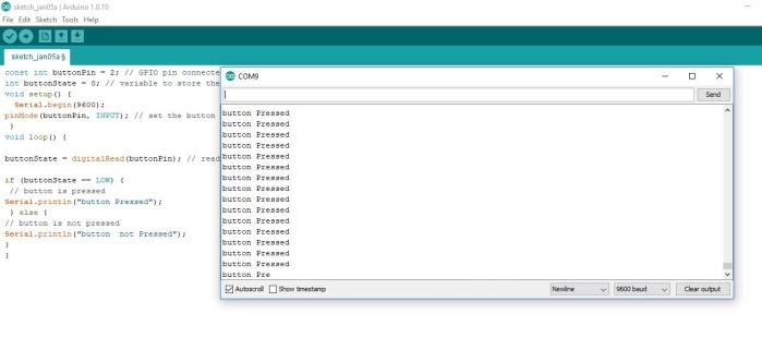 Serial.println("button Pressed");