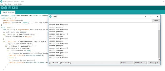 Serial.println("button not pressed");