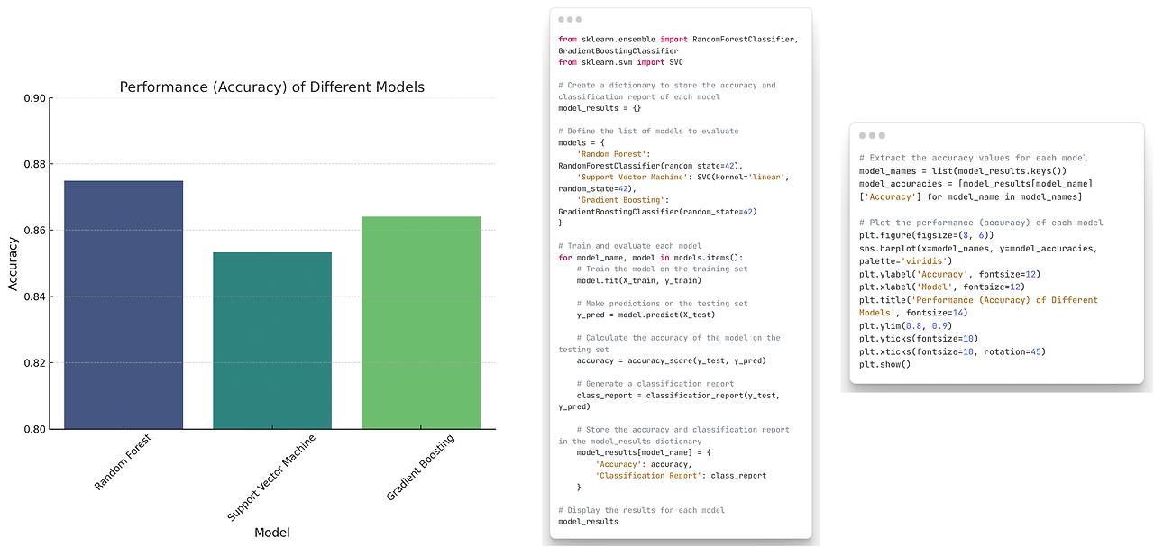 더 나은 모델 사용 메시지가 표시되면 ChatGPT는 랜덤 포레스트, 서포트 벡터 머신, 그라데이션 부스팅을 사용한 다음 막대 차트를 표시하여 예측 성능을 비교합니다(그림 3).