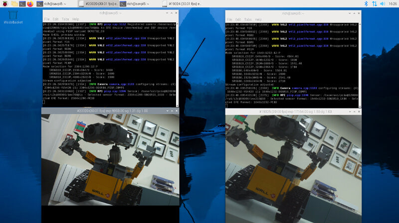 이제 첫 번째 카메라 옆에 두 번째 카메라의 피드를 보여주는 창이 표시됩니다(최신 카메라 모듈 3(왼쪽)의 자동 초점 기능이 여기서 훌륭하게 작동합니다!):