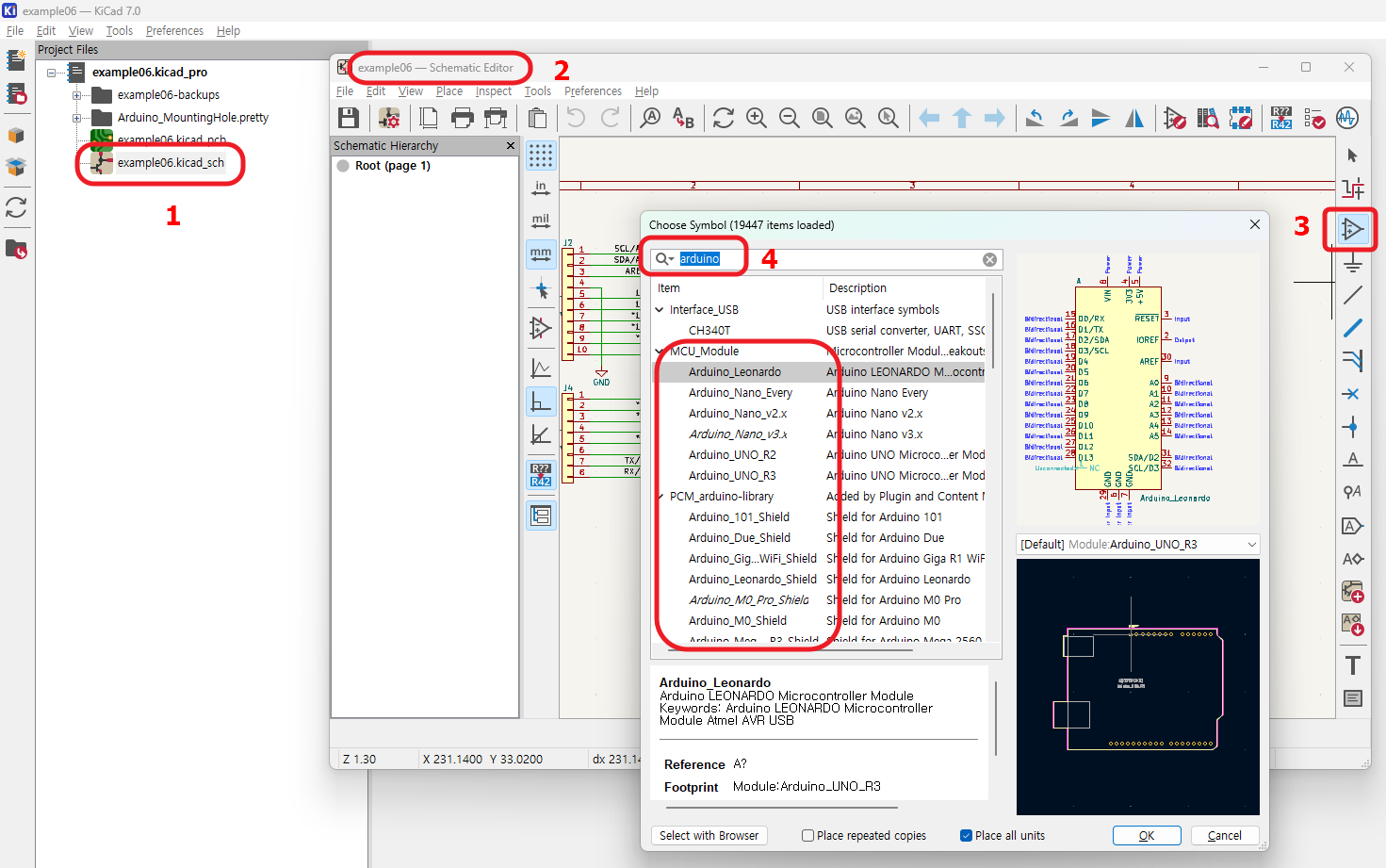 아두이노 계열 모든 MCU 모듈에 대한 KiCad 심볼과 풋프린트 설치 방법입니다. Arduino 실드, 소켓, 타일 등 형태와 종류가 많은데 모두 설치합니다.