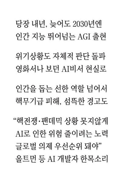 AGI 시대를 두고 불안한 시선을 보내는 이도 많습니다. 섬뜩한 경고도 줄줄이 나옵니다.