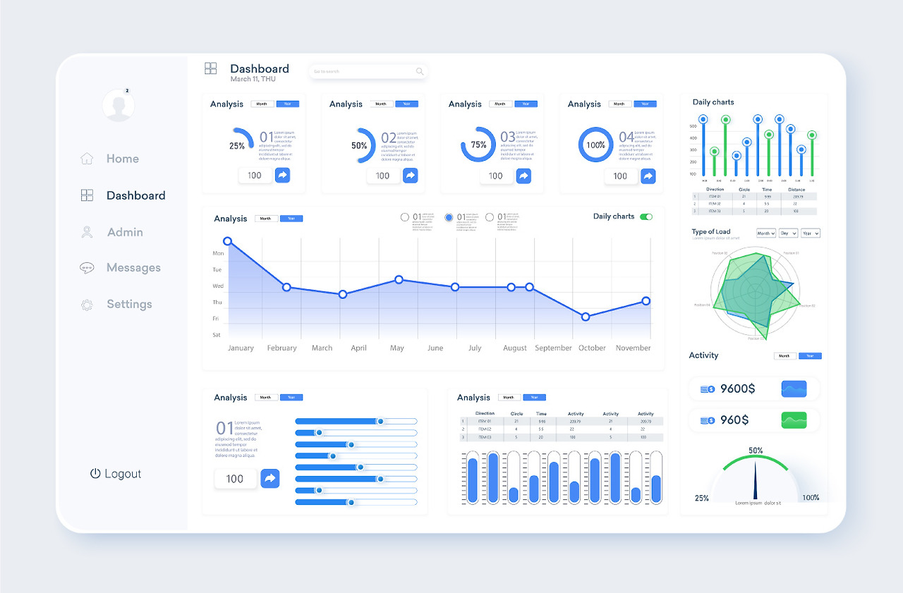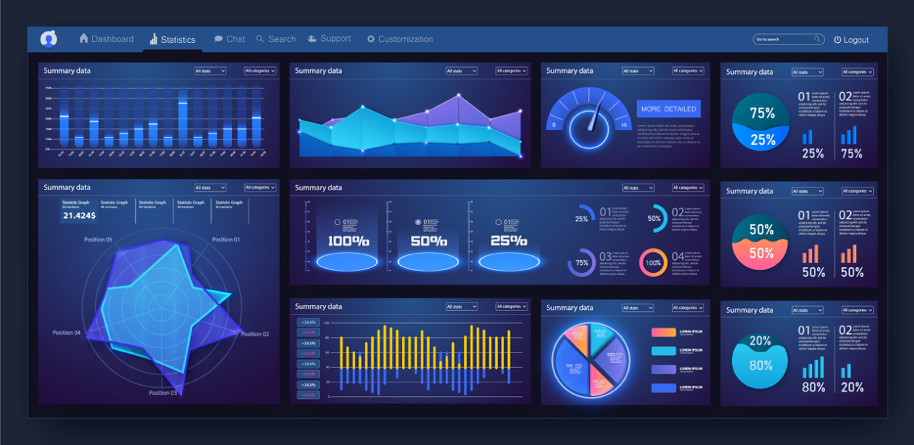 데이터 시각화 결과를 공유하는 대표적인 방법은 데이터 대시보드입니다. 데이터 대시보드는 여러 개의 시각화 차트와 표로 구성되며, 중요한 데이터 지표를 모니터링하는 데 사용됩니다. 대부분의 데이터 대시보드는 사용자가 데이터 조회 기간을 선택하거나 특정 기준에 따라 데이터를 필터링할 수 있는 대화형 기능을 제공하여 데이터를 자유롭게 탐색할 수 있습니다.