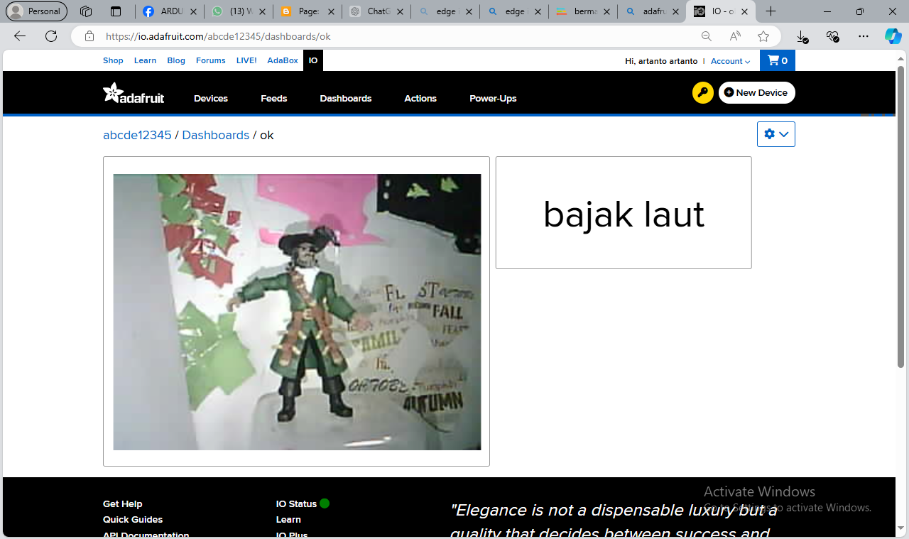 5. 피드와 대시보드가 Adafruit IO에서 성공적으로 생성되면 다음 단계는 Edge Impulse에서 생성된 라이브러리를 사용하여 ESP32-CAM을 프로그래밍하는 것이며, 여기에는 Adafruit IO로 데이터를 전송하기 위한 추가 지침이 제공됩니다. Arduino Editor Online(https://cloud.arduino.cc/)을 사용하여 ESP32-CAM을 프로그래밍합니다. 에지 임펄스로 라이브러리를 업로드하고 다음 코드를 사용합니다(https://pastebin.com/B8L4Yitq).
