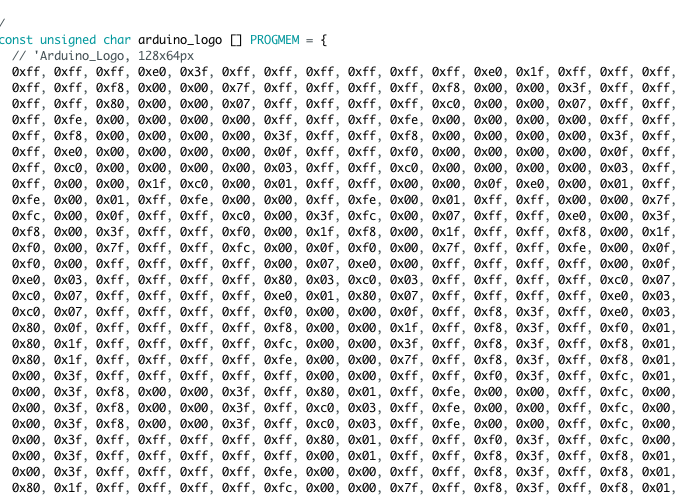 이제 128x64 사이지의 이미지를 얻었다면 이를 어떻게 바이트 배열로 변환할 수 있는지 알아야 겠죠?