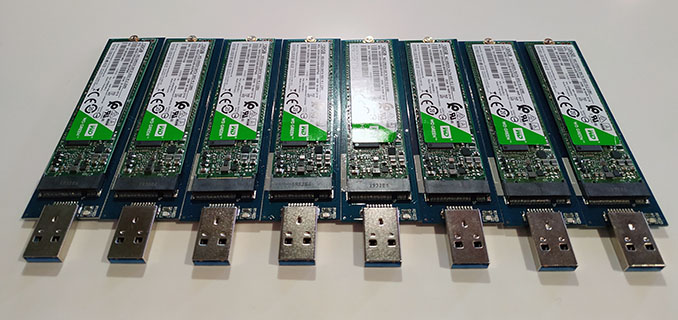 HDFS 파일시스템은 제 10개의 라즈베리파이 4 클러스터 중 8개의 RPI에 설치됩니다. 최소한의 스토리지 크기와 적절한 속도를 위해 SSD 8개 + USB3 어댑터 8개를 추가로 구입했습니다.