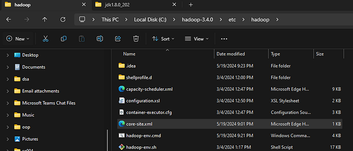 04단계: 다음으로, 다음과 같이 core-site XML 파일에 구성을 추가해야 합니다. 이 파일은 hadoop-root-folder -> etc -> hadoop -> core-site.xml에서 찾을 수 있습니다.