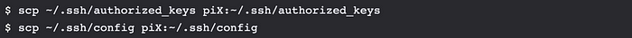 마지막으로 모든 Pi에서 암호 없는 ssh를 복제하려면 scp를 사용하여 위에서 언급한 두 파일을 Pi #1에서 다른 Pi로 복사하기만 하면 됩니다.