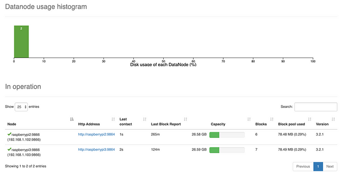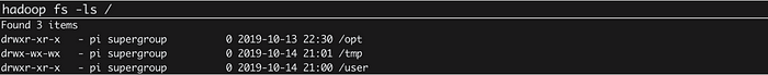 위의 그림은 HDFS가 최소한 Pi #1에서 실행 중임을 보여줍니다. Spark와 Hadoop이 함께 작동하는지 확인하려면 아래 명령줄을 사용할 수 있습니다.