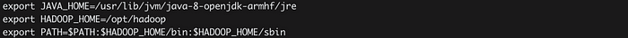 Spark가 YARN과 통신할 수 있도록 Pi #1의 ~/.bashrc에 두 개의 환경 변수를 더 구성해야 합니다. 이전에 다음을 정의했습니다.