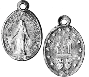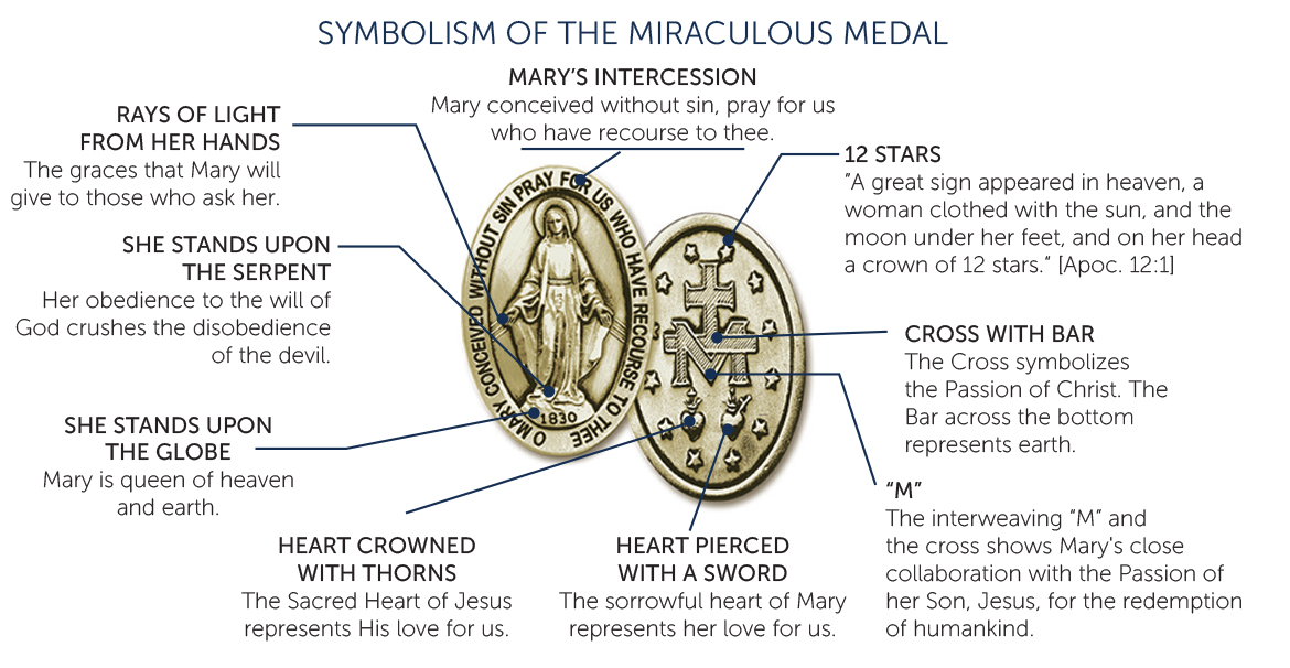 이 메달의 강력한 힘은 무엇일까요? CM 키어런 모란 신부는 영구 노베나 강론에서 수표의 종이 종류가 수표의 가치를 결정하지 않는 것처럼 기적의 메달의 힘은 메달의 재질에 있지 않다고 신도들에게 말했습니다. 메달의 힘의 원천은 하늘에 있으며, 교회의 축복과 승인을 받은 복되신 어머니의 약속입니다.