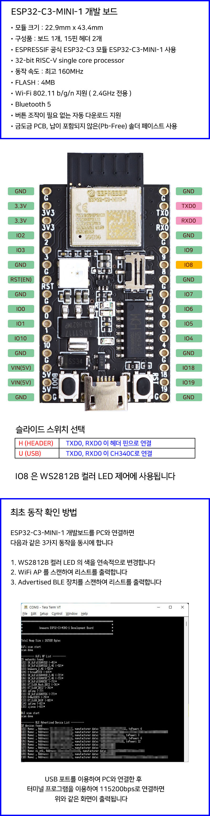 ESP32C3 개발보드 ESP32C3MINI1 4MB FLASH