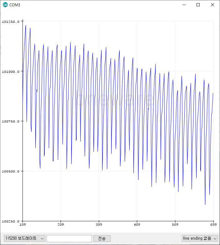 툴 -> 시리얼 플로터 를 실행시키면 위와 같은 파형이 출력됩니다