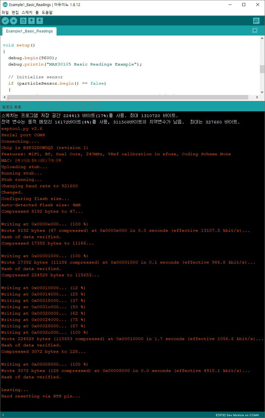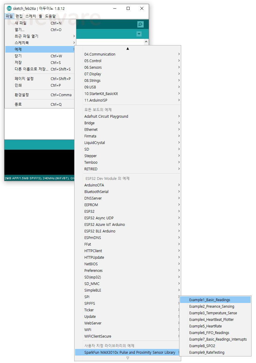 파일 -> 예제 -> SparkFun MAX3010x Pulse and Proximity Sensor Library