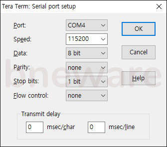 저희는 Tera Term 을 사용해서 테스트 하였습니다