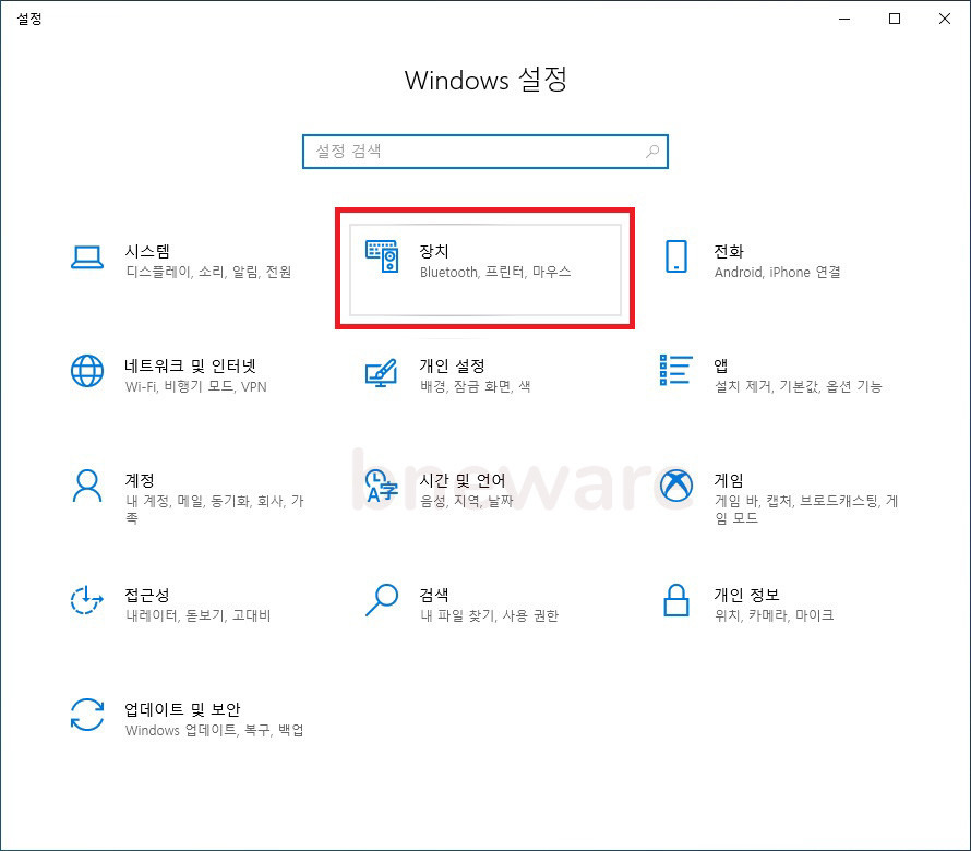 좌측에서 "Bluetooth 및 기타 디바이스" 를 선택한 후