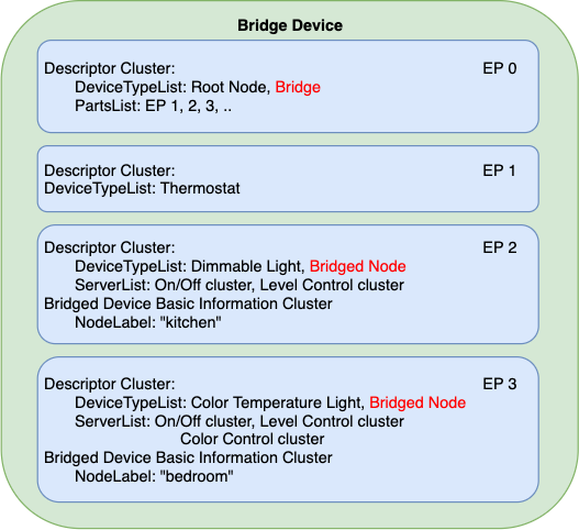 - 각 엔드포인트의 Descriptor 클러스터는 특정 Bridged 장치에 대한 정보를 제공합니다.