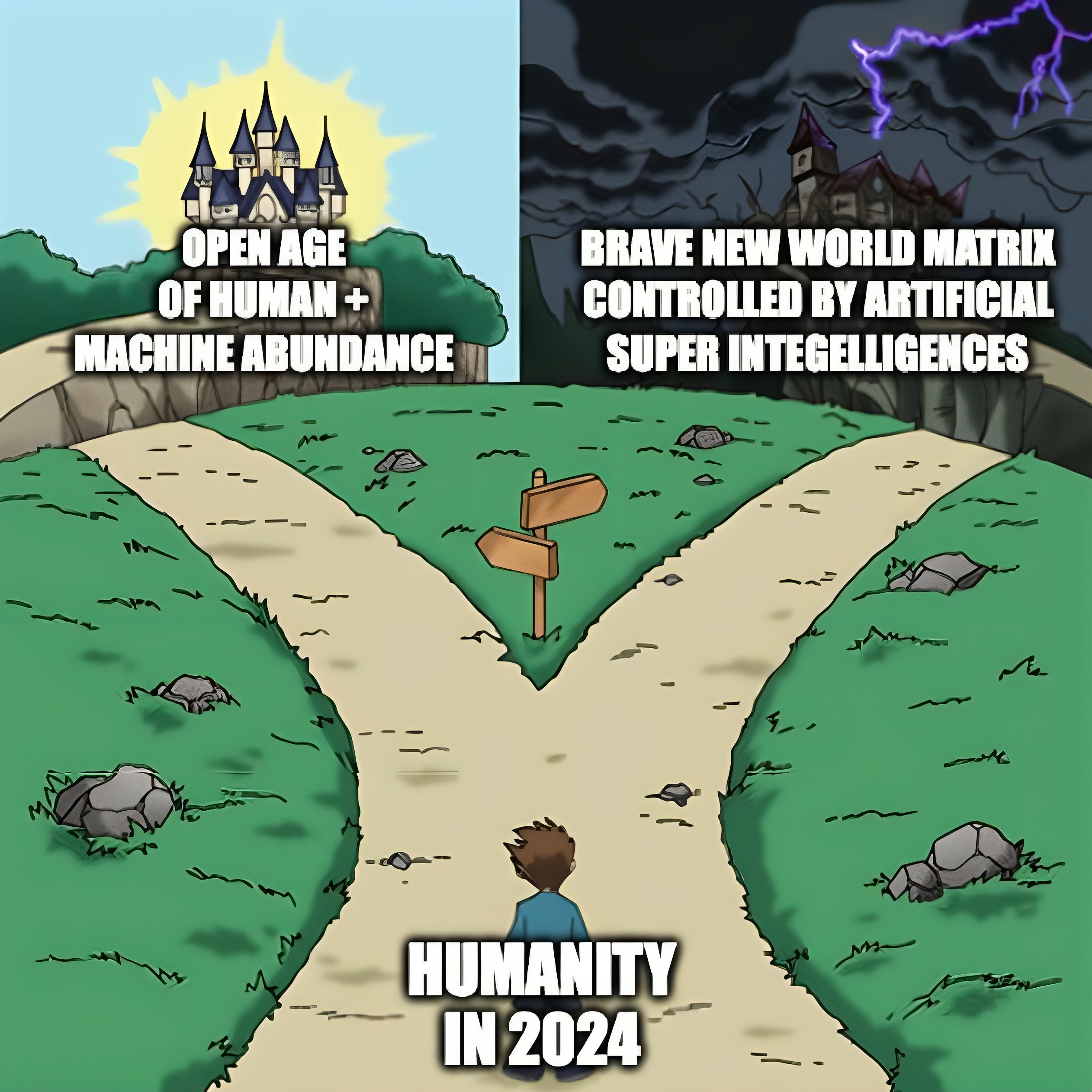 이러한 결정적인 순간에 존재의 이중성은 극명하게 드러납니다. 한 가지 길에는 AI가 인류를 현재 상상을 초월하는 수준의 성취와 깨달음으로 끌어올리는 유토피아적 미래에 대한 약속이 있습니다. 반면에 우리는 우리의 통제와 이해를 넘어서 작동하는 인공 초지능이 우리와 충돌하는 목표를 추구하고, 동일한 필수 자원을 놓고 경쟁하며 우리 종의 생존을 위협할 수 있는 종말론적 현실에 직면해 있습니다. 그리고 아마도 우리 행성도 위협할 수 있습니다.