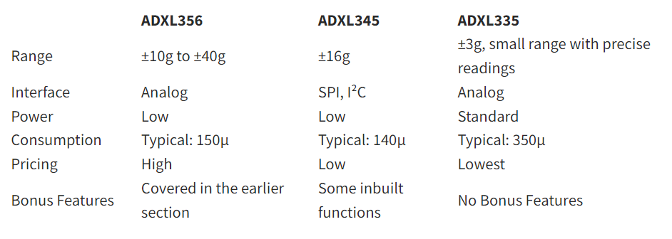 ADXL 시리즈 비교: ADXL356 vs ADXL345 vs ADXL335 주요 차이점