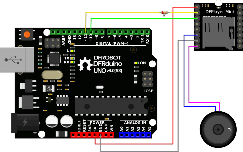 <https://www.dfrobot.com/wiki/index.php/DFPlayer_Mini_SKU:DFR0299#Connection_Diagram>