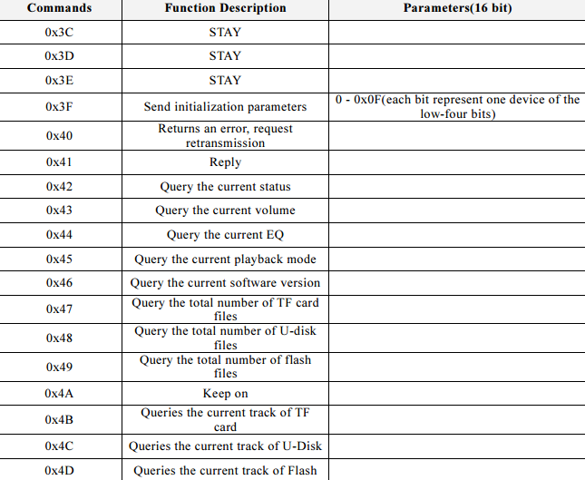myDFPlayer.playMp3Folder(4); //play specific mp3 in SD:/MP3/0004.mp3; File Name(0~65535)
