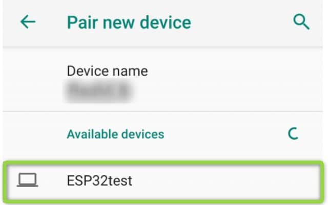 새 장치 페어링을 선택하고 ESP32test 장치가 나타날 때까지 기다립니다. 이름을 원하는 대로 변경할 수 있습니다. 코드에서 아래 줄을 수정해야 합니다.