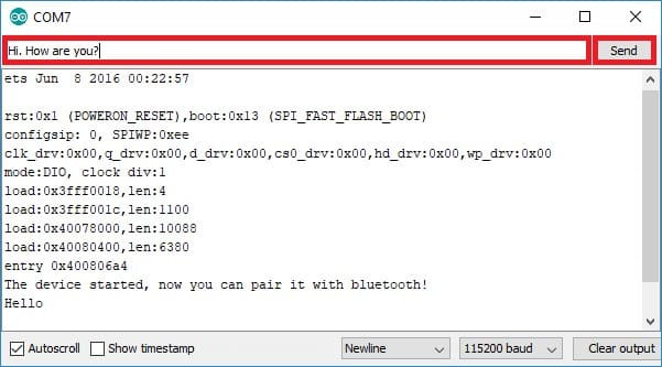 Serial.println("The device started, now you can pair it with bluetooth!");
