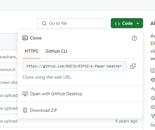 그런 다음 ESP32-e-Paper-Weather-Display 라이브러리의 github 리포지토리에서 디스플레이 크기와 유형에 맞는 예제 코드를 다운로드합니다. 예를 들어, 저는 Waveshare_2_9 예제 코드를 다운로드했습니다. 또는 모든 예제는 아니지만 일부 예제가 있는 Arduino IDE를 사용할 수도 있습니다: