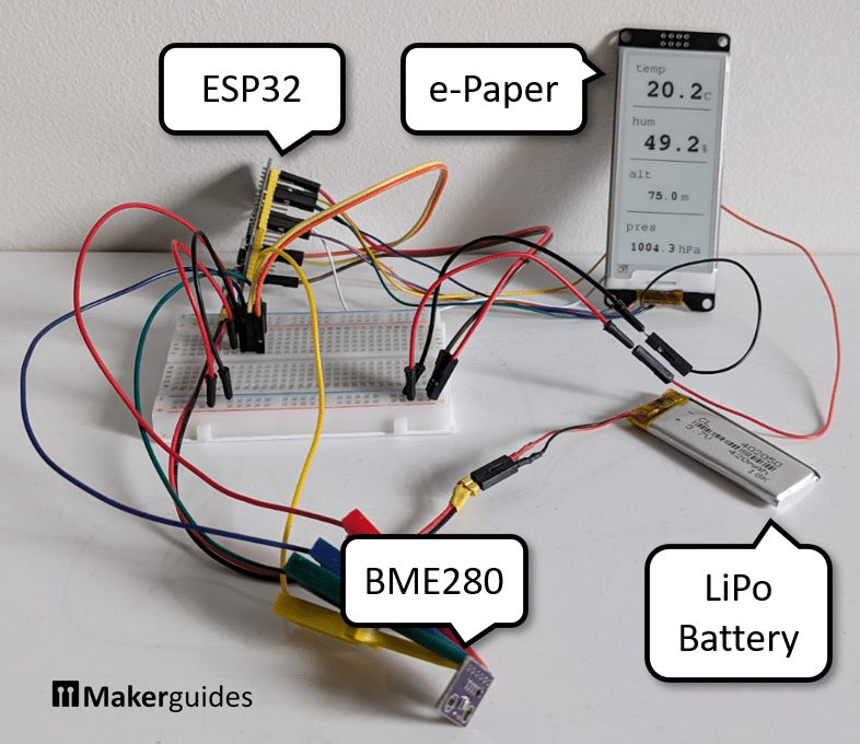 이 튜토리얼에서는 ESP32, BME280 센서 및 전자 종이 디스플레이로 배터리로 작동하는 기상 관측소를 만드는 방법을 배웠습니다. BME280 센서를 사용하여 주변 온도, 습도 및 기압을 측정했습니다.