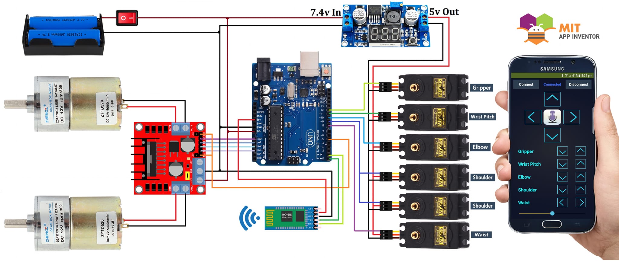 //이것은 로봇 팔이 달린 로봇 자동차의 코드