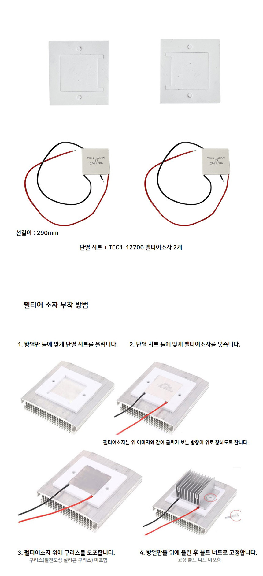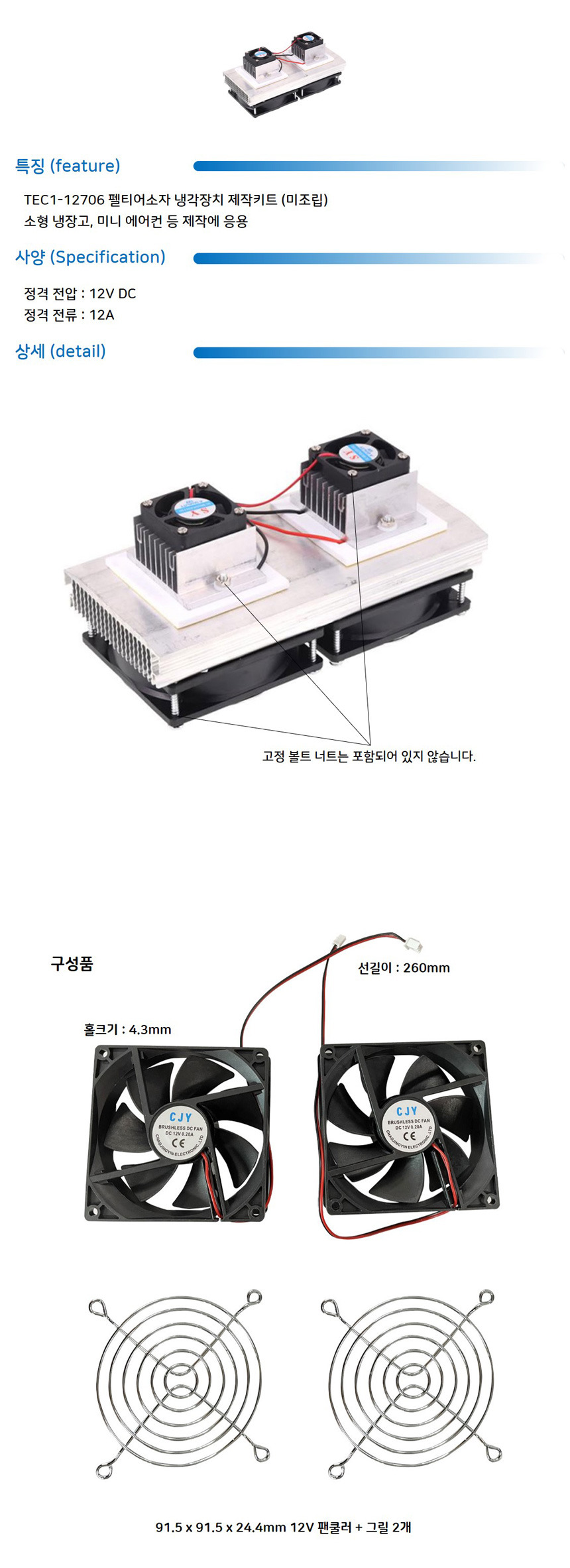 TEC1-12706 펠티어소자 냉각장치 제작 키트 소형냉장고 미니에어컨 (HCM2901a)