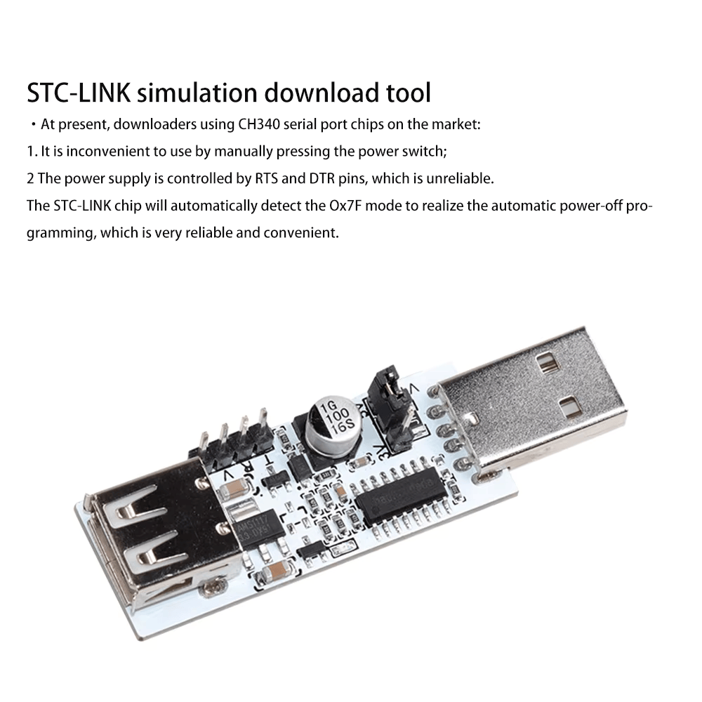 STC-LINK 칩은 자동으로 0x7F 모드를 감지하여 자동 전원 끄기 프로그래밍을 실현하므로 매우 안정적이고 편리합니다.