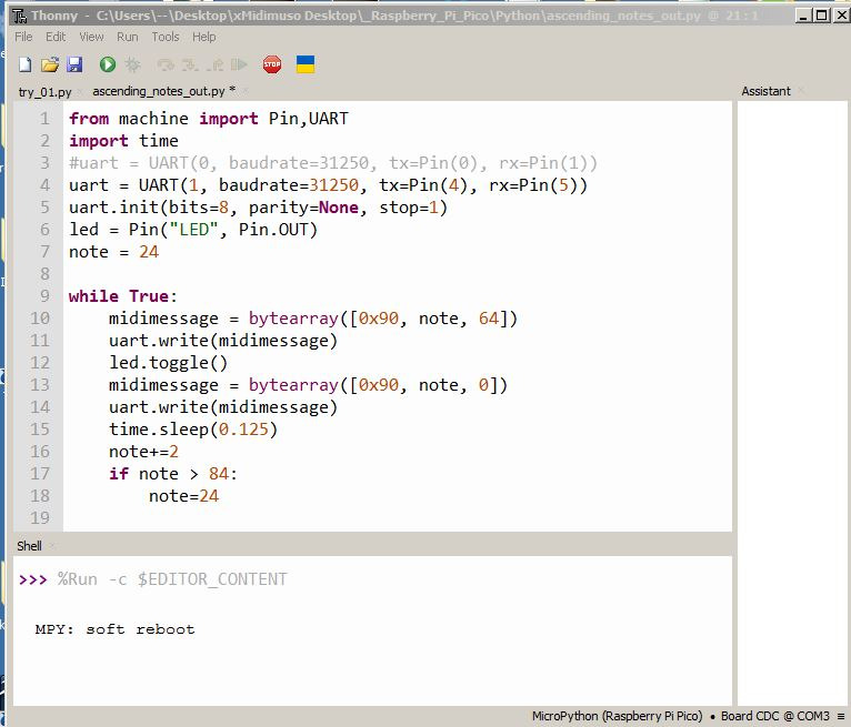 C 언어 코드가 더 빠르다는 것을 알고 있지만 나쁜 경험이 있었고 파이썬이 훨씬 쉽다는 것을 알았습니다. 다른 사람에게 코드를 작성해 달라고 요청하는 것은 아니지만 특히 (1)번 질문이 약간 혼란스럽습니다. picoMIDI에 대한 설명서는 이 페이지에 있습니다: