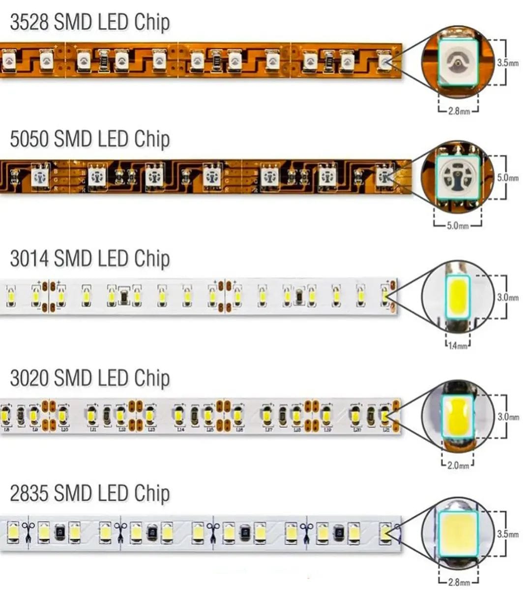 LED 스트립을 선택할 때 고려해야 할 다른 많은 요소가 있습니다. 사진의 목적은 LED 패키지 크기를 보여주기 위한 것이지 애플리케이션 가이드를 위한 것이 아닙니다.