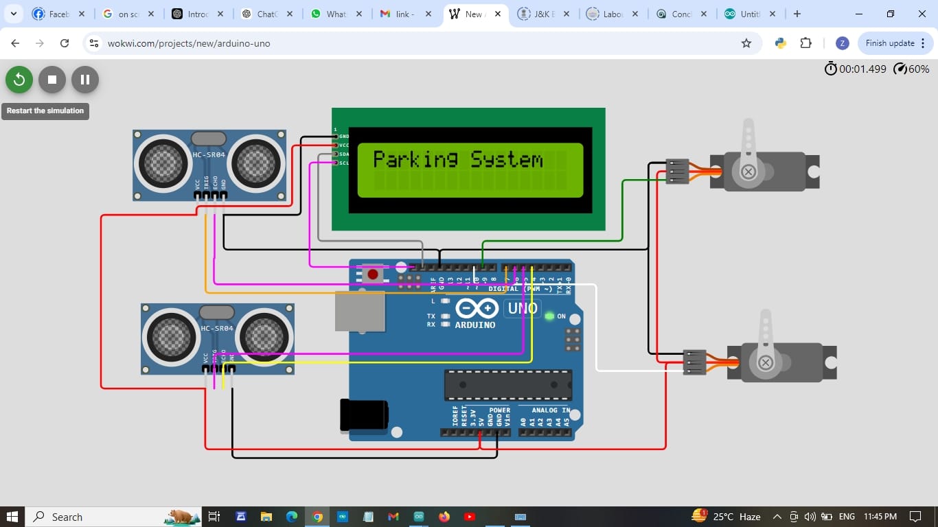 이 시스템의 핵심은 초음파 센서나 적외선 센서와 같은 다양한 센서에 연결된 Arduino 마이크로컨트롤러를 각 주차 공간에 배치하는 것입니다. 이러한 센서는 지정된 공간에 차량이 있는지 없는지를 감지합니다. Arduino는 이 데이터를 수집하여 처리하여 어떤 주차 공간이 점유되어 있고 어떤 주차 공간이 이용 가능한지 확인합니다.