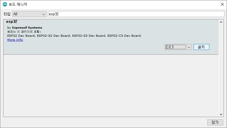 ESP32 패키지가 설치 됩니다