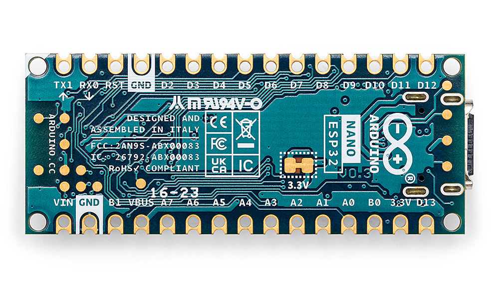 아두이노 나노 ESP32는 u-blox®의 NORA-W106 모듈인 Espressif의 ESP32 마이크로컨트롤러를 기반으로 하는 최초의 아두이노 보드입니다. USB-C® 커넥터, 16MB(128Mbit) 플래시, MicroPython 및 Arduino Cloud 지원으로 매우 다재다능한 개발 보드입니다. 이 보드는 MicroPython을 배우기 위한 완벽한 입문용 보드이며, 무료 강좌를 통해 자세히 알아볼 수 있습니다: 마이크로파이썬 101