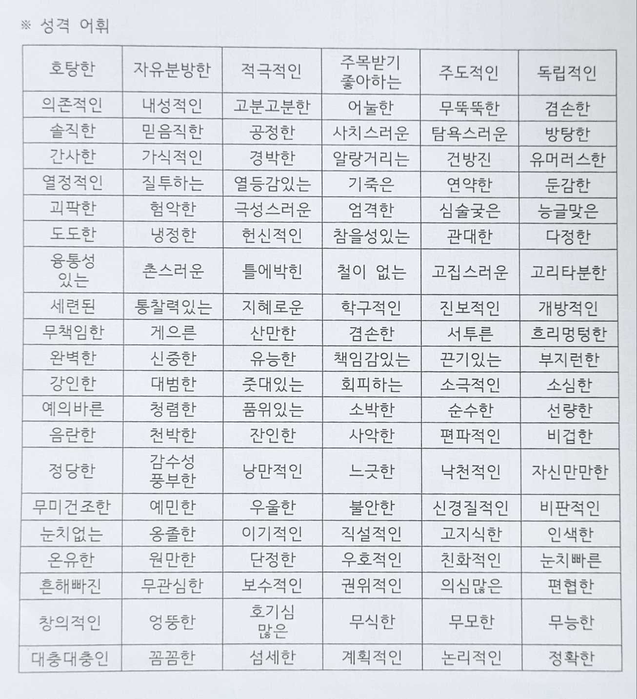 ※ 성격 어휘