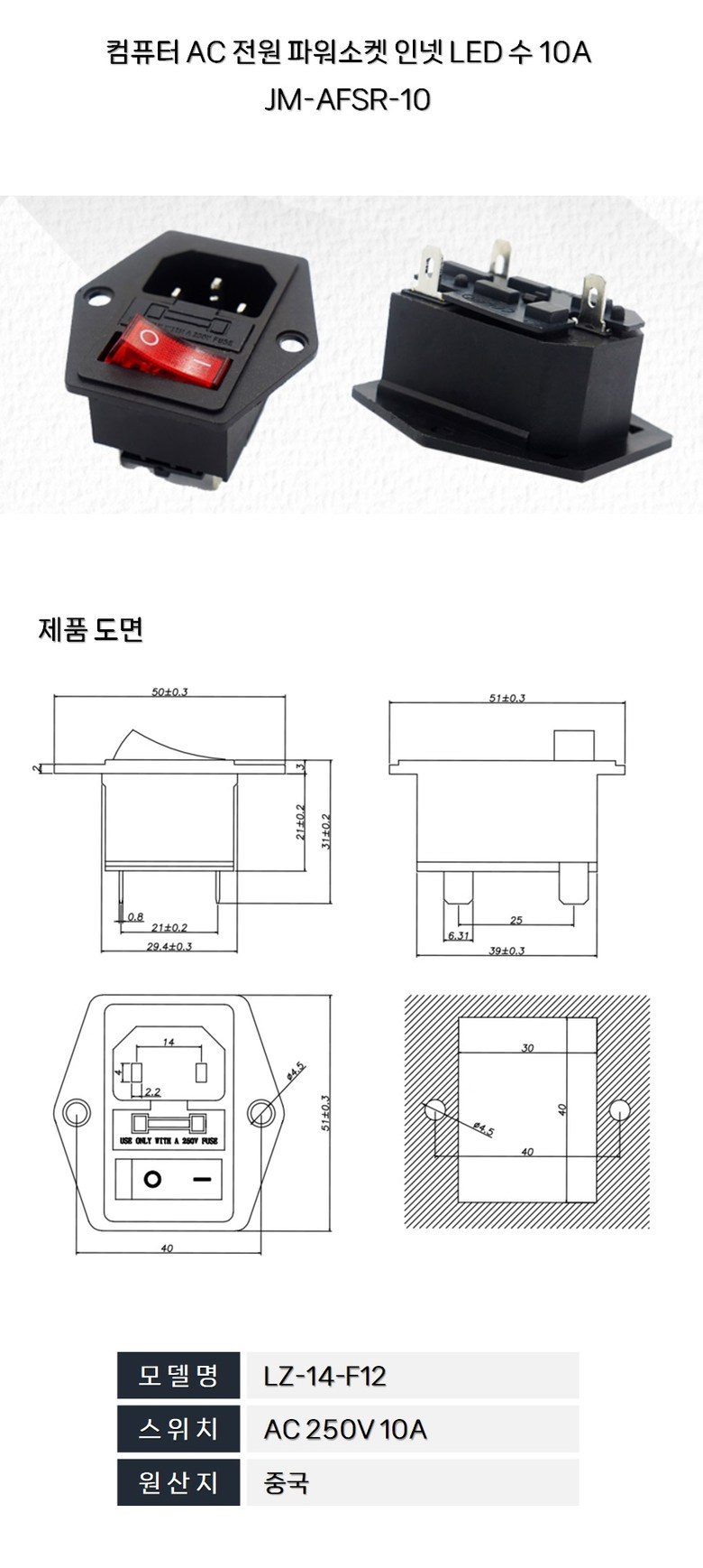 더 간단한 콘센트 - AC 파워 전원소켓 휴즈 스위치 일체형